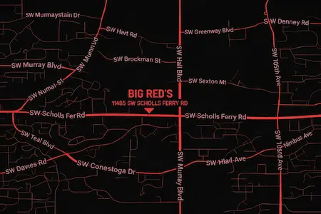 Big Red’s Bar & Grill is located at 11485 SW Scholls Ferry Rd, Beaverton, OR 97008. It’s easily accessible in the Beaverton area and offers convenient onsite parking for guests.